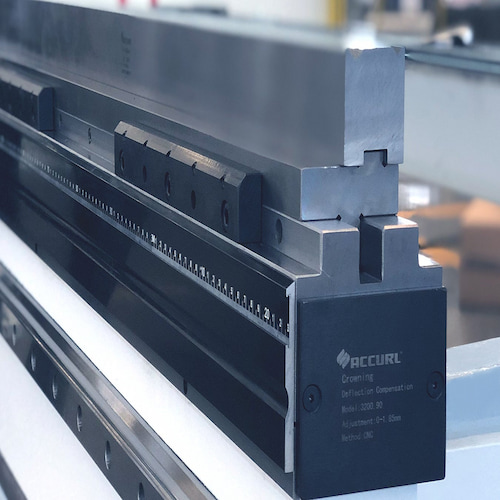 Kompensacja ugięcia: Gdy długa powierzchnia stołu jest zgięta, suwak i powierzchnia stołu ulegają lekkiemu odkształceniu pod wpływem siły, co skutkuje niedokładnymi kątami środkowymi. Funkcja kompensacji ugięcia (hydrauliczna lub mechaniczna) może automatycznie przeciwdziałać temu odkształceniu i jest kluczową konfiguracją zapewniającą dokładność gięcia długich elementów. Zdecydowanie zaleca się jej wyposażenie.