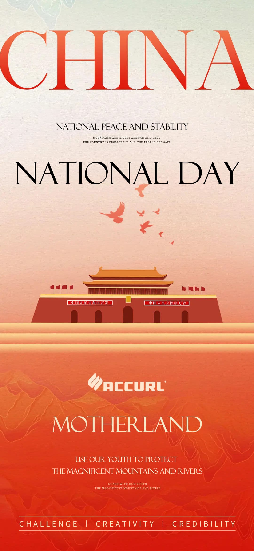 Siedemdziesiąt sześć lat wytrwałości w obliczu wiatru i deszczu ukształtowało dzisiejszy blask. Dobrobyt kraju zapewnił najsolidniejszy fundament i najszerszą scenę dla rozwoju naszego przedsiębiorstwa. Z perspektywy czasu, każde osiągnięcie Accurl zawdzięcza w dużej mierze pracowitości i mądrości każdego pracownika, a także niezachwianemu zaufaniu i bliskiej współpracy każdego klienta. Z tej radosnej okazji zbiegu dwóch świąt, wyrażamy naszą najgłębszą wdzięczność każdemu z naszych ambitnych dążeń i świętujemy tę niezwykłą epokę.